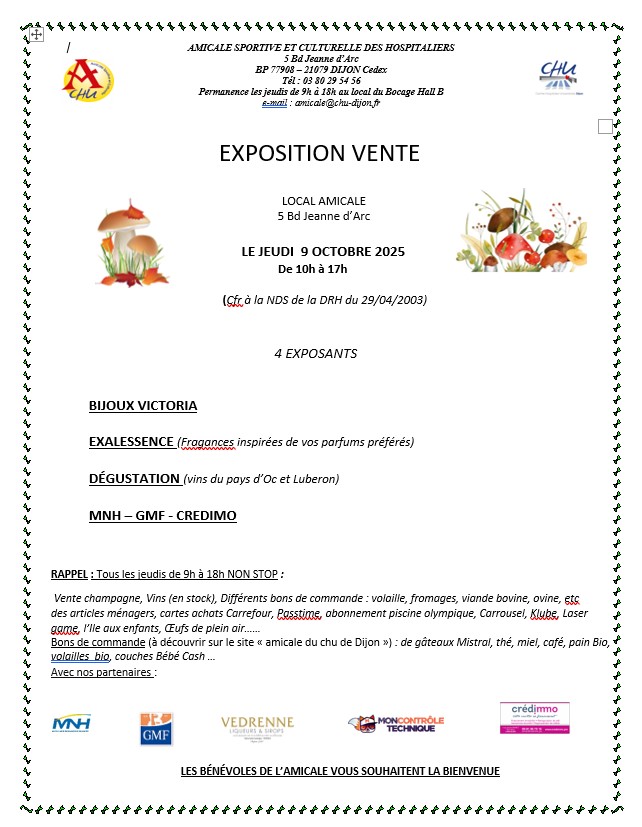 4 Exposants seront présents le jeudi 9 Octobre au local de l'amicale