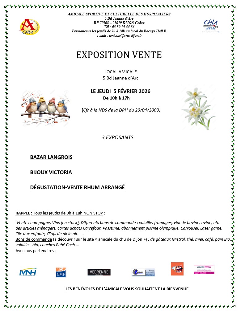 3 Exposants seront présents le jeudi 5 Février au local de l'amicale