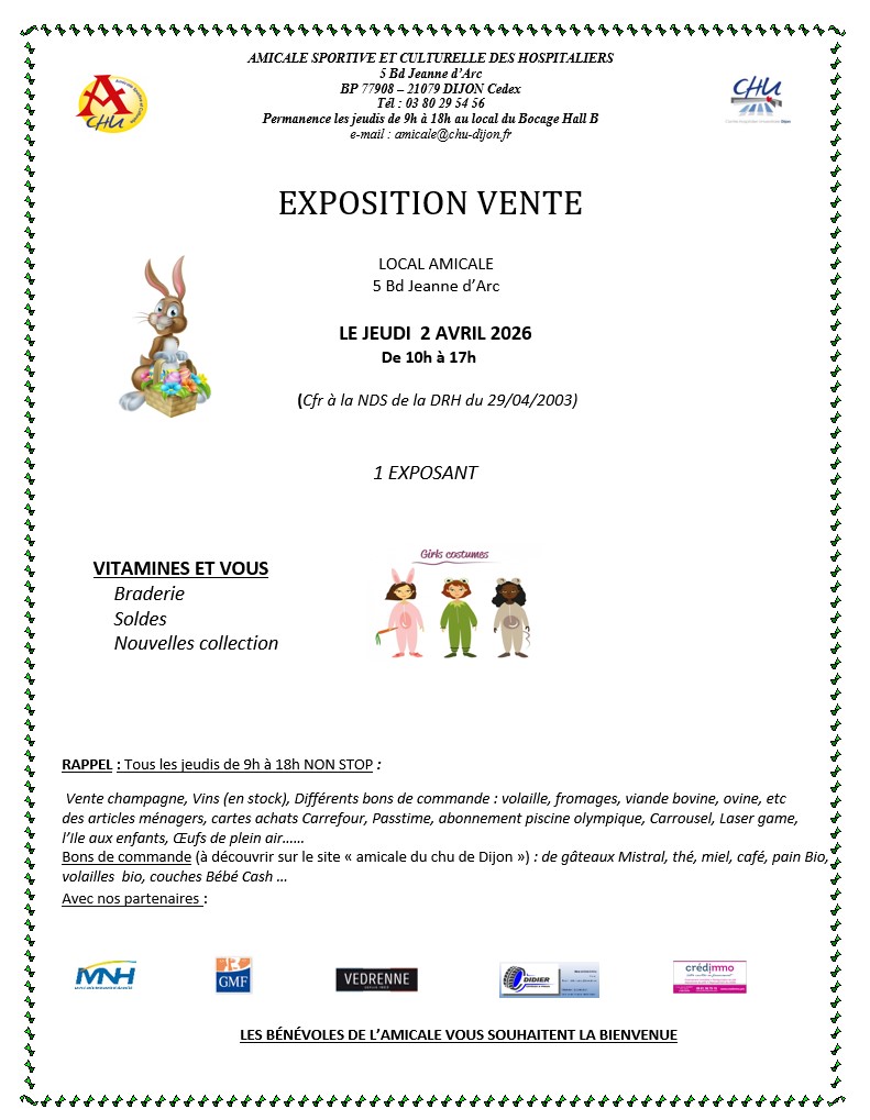 1 Exposant sera présent le jeudi 2 Avril au local de l'amicale