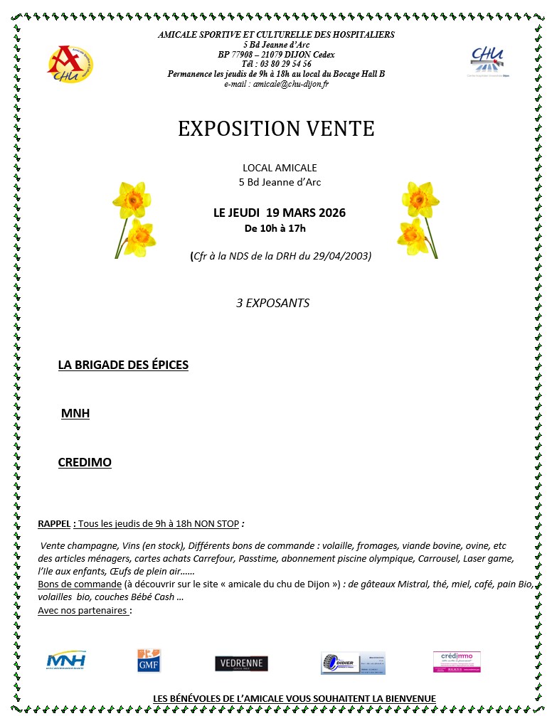 3 Exposants seront présents le jeudi 19 Mars au local de l'amicale