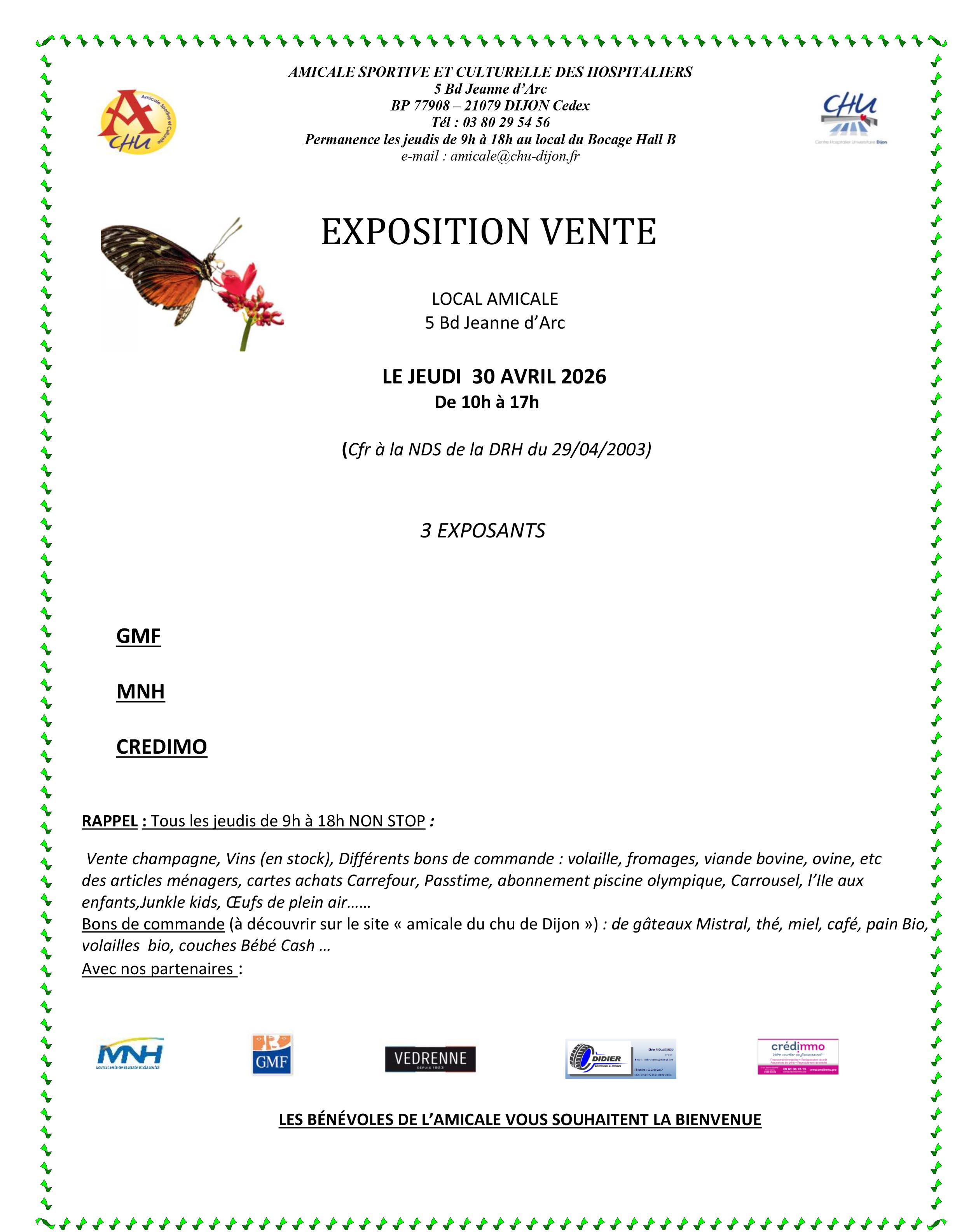 3 Exposants seront présents le jeudi 30 Avril au local de l'amicale